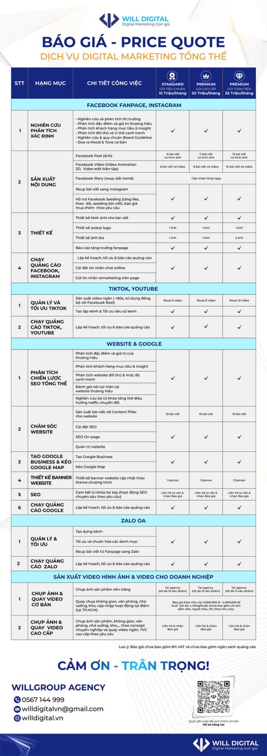 Báo giá content marketing tổng thể tại Will Digital