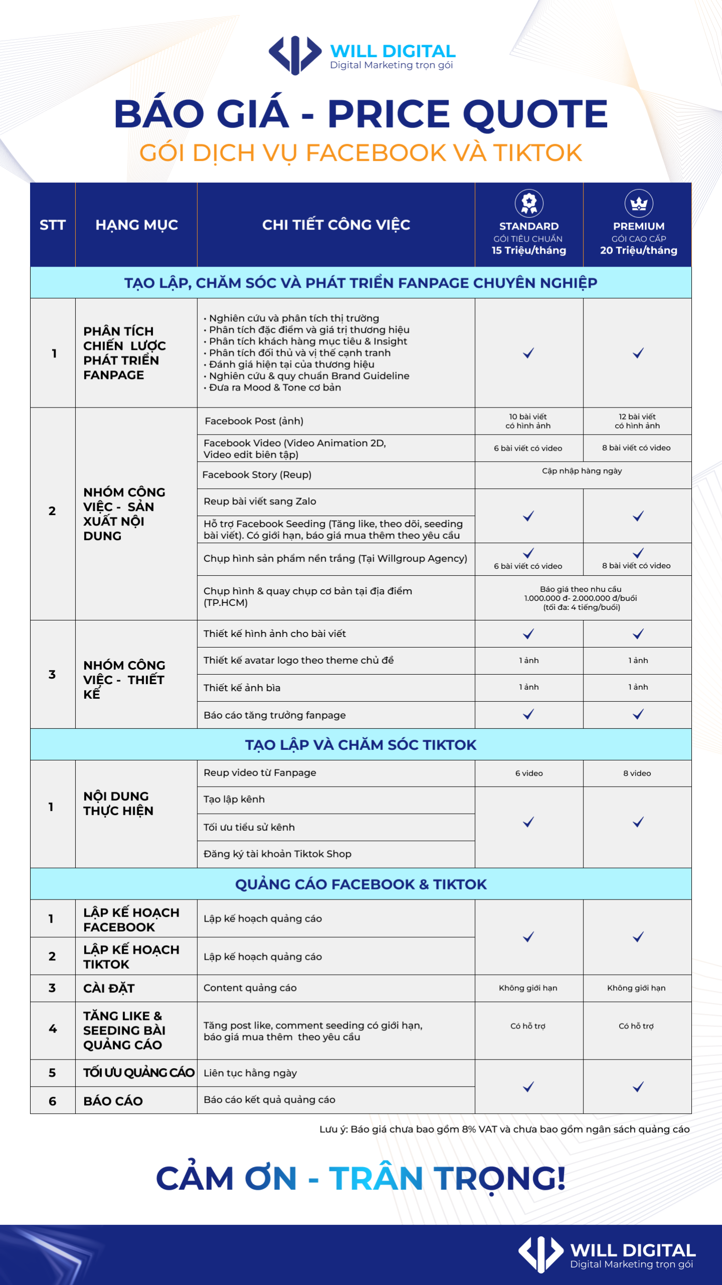 Dịch vụ chăm sóc fanpage trọn gói của Will Digital giúp bạn biến một fanpage “đang ngủ quên” thành một kênh bán hàng sống động, chuyên nghiệp và hiệu quả mỗi ngày.
